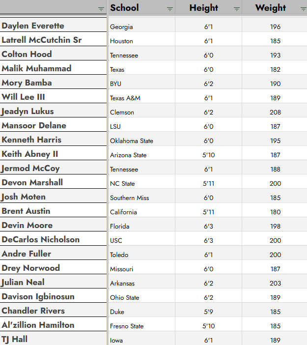 Name, school, verified height/weight, PFF grades and CFB 26 rating. This is the stuff in addition to film that takes time. I’d love to post a video mock draft every day and get hundreds of views, but sometimes the boring stuff needs to get done. That being said, I’ll be posting a video this weekend for my final mock draft before draft week.